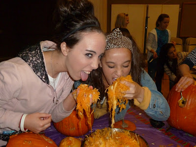 Jacinda had such a HUGE pumpkin!! Sister Ashcraft watched while Jacinda gutted it! lol